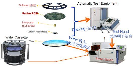 晶圆CP测试,常应用于功能测试与性能测试中,了解芯片功能是否正常,以及筛掉芯片晶圆中的故障芯片。CP【Chip Probing】顾名思义就是用探针【Probe】来扎Wafer上的芯片,把各类信号输入进芯片,把芯片输出响应抓取并进行比较和计算,也有一些特殊的场景会用来配置调整芯片【Trim】。需要应用的设备主要是自动测试设备【ATE】+探针台【Prober】+仪器仪表,需要制作的硬件是探针卡【Probe Card】。